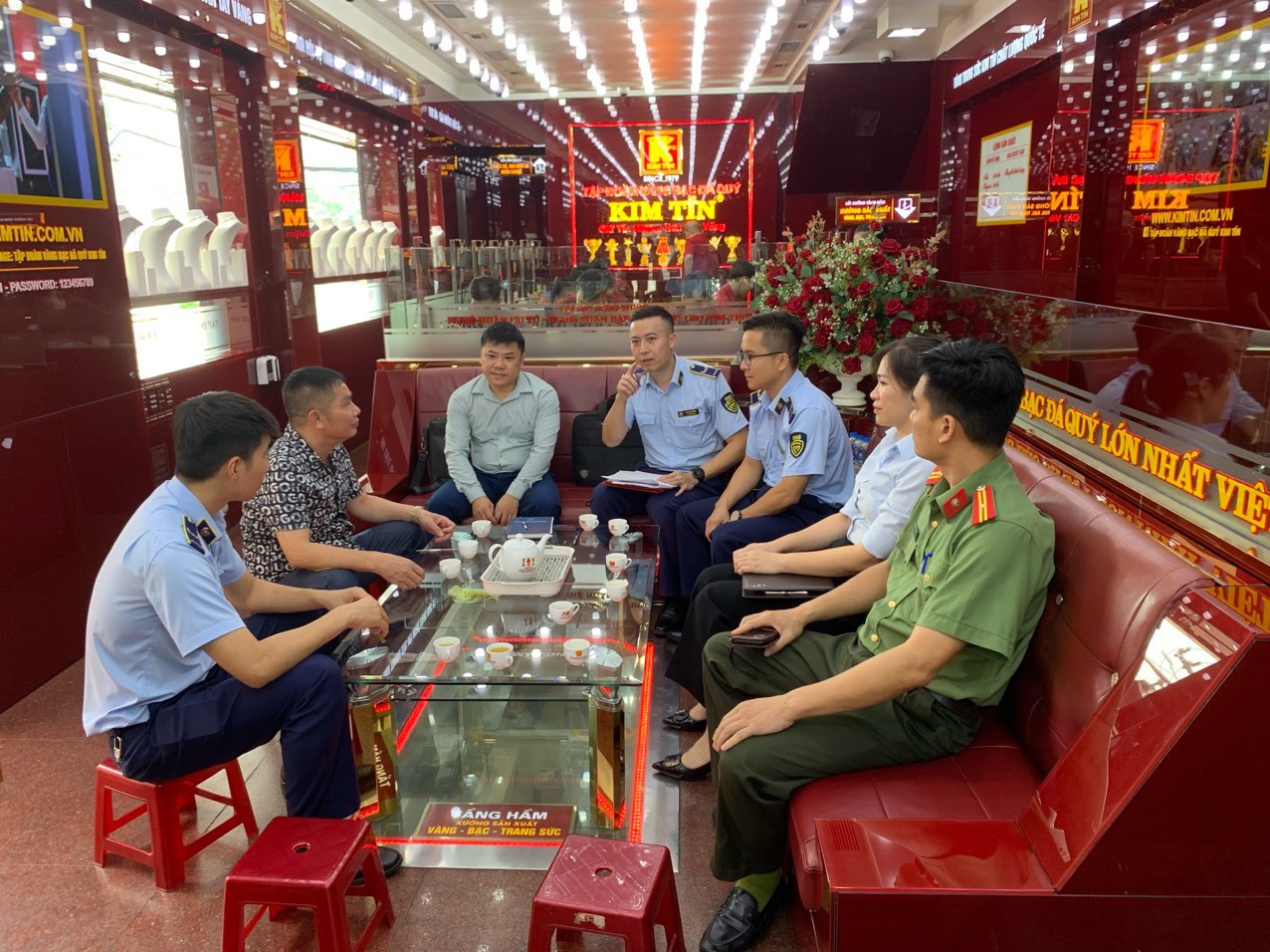 Đội QLTT số 5 phối hợp với các lực lượng chức năng kiểm tra cơ sở kinh doanh vàng trên địa bàn.