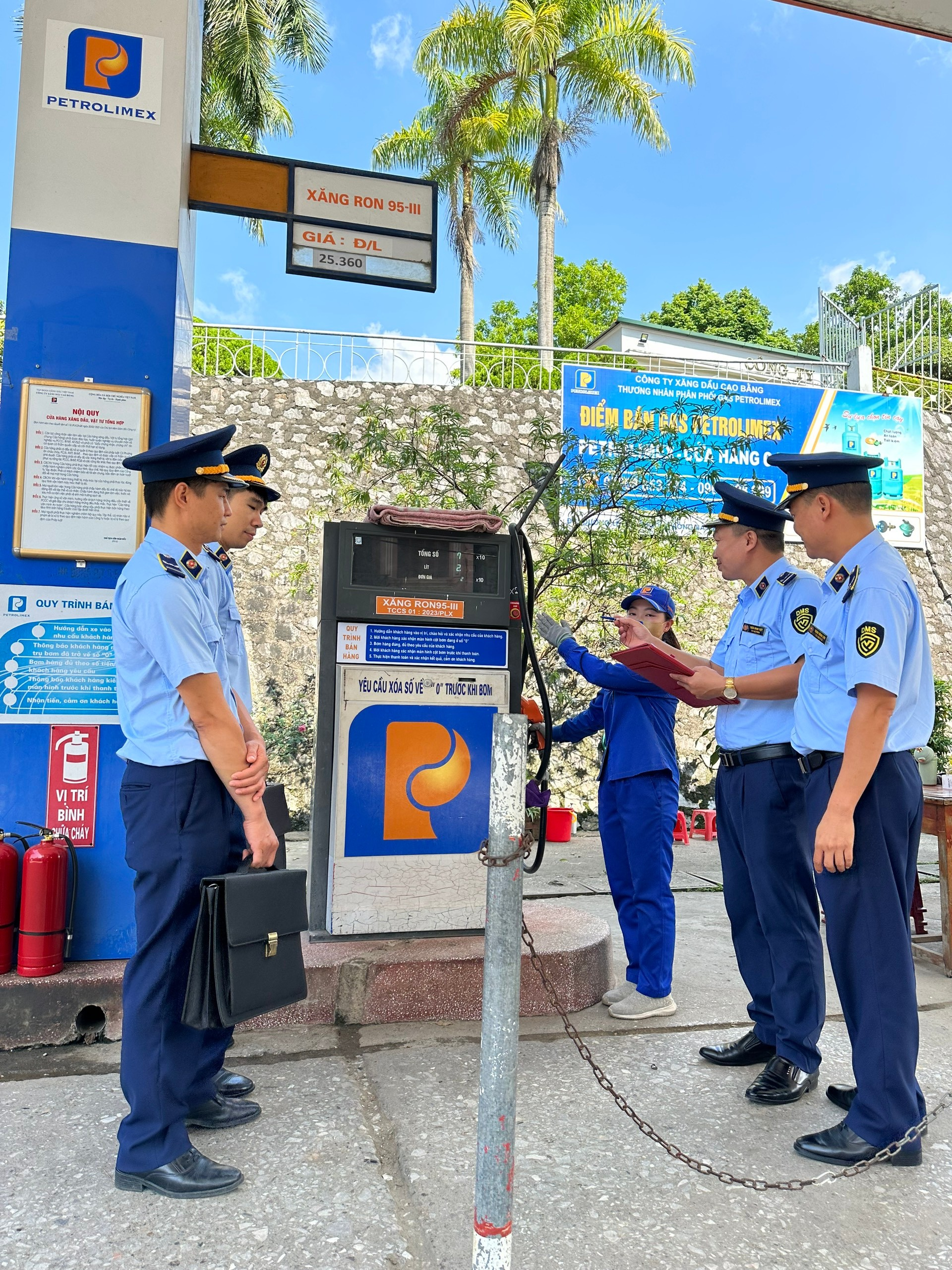 Công chức Đội QLTT số 5, giám sát việc điều chỉnh giá xăng dầu tại địa bàn thành phố Cao Bằng