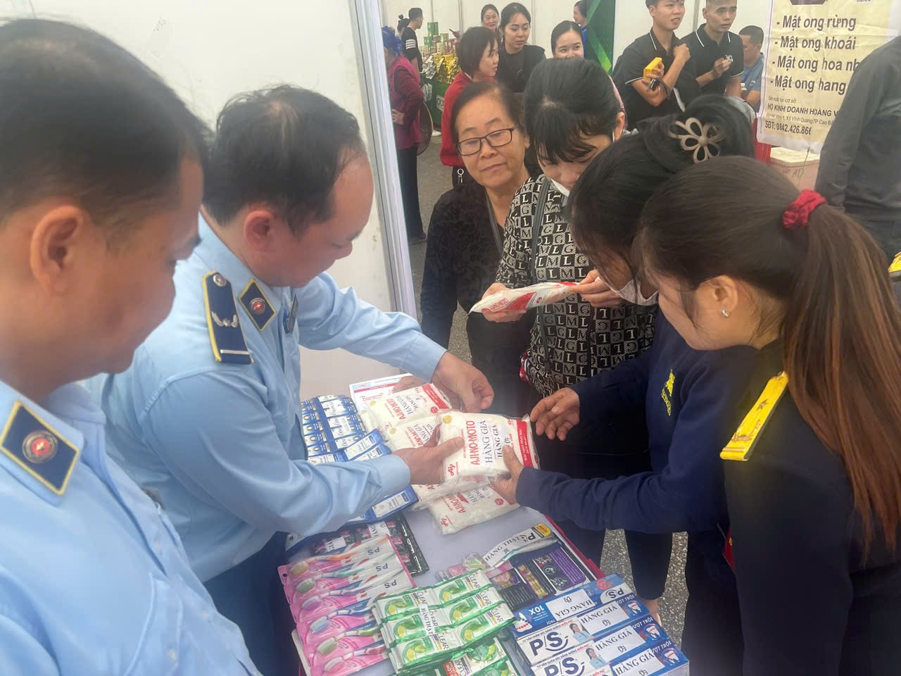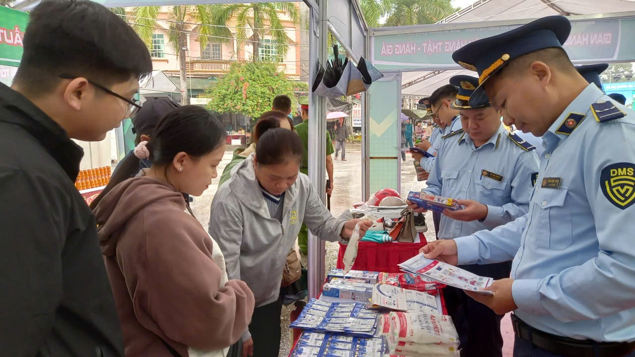 Chỉ đạo trực tiếp từ gian hàng, đồng chí Nông Minh Huấn, Phó Chi cục trưởng Chi cục QLTT nhấn mạnh: “Công tác tuyên truyền, hướng dẫn nhận diện hàng thật - hàng giả là một trong những giải pháp quan trọng, thiết thực giúp người dân chủ động phòng tránh mua phải hàng kém chất lượng, đồng thời góp phần cùng lực lượng quản lý thị trường đấu tranh, ngăn chặn hành vi gian lận thương mại.”