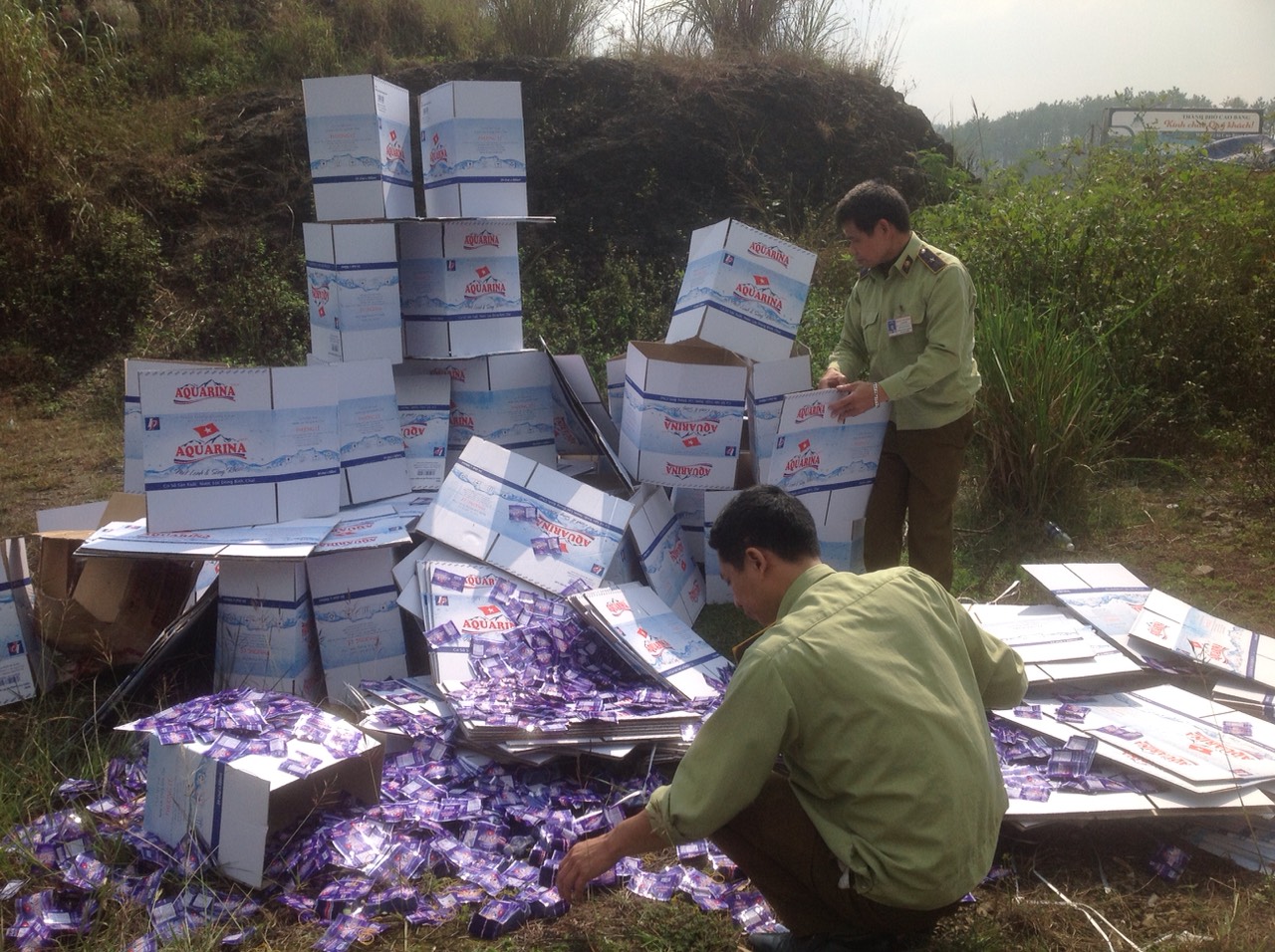 Ngày 25/10/2019, Đội Quản lý thị trường số 1 đã tiến hành kiểm tra tại cơ sở nước uống đóng bình, chai Phương Lê, chủ cơ sở là ông Nguyễn Văn Bách (Tổ 9, phường Hòa Chung, TP Cao Bằng). Qua kiểm tra, Đội Quản lý thị trường số 1 đã xử phạt vi phạm hành chính đối với ông Nguyễn Văn Bách 13.800.000đ về hành vi kinh doanh, chế biến, đóng gói hàng hóa xâm phạm quyền sở hữu trí tuệ đối với nhãn hiệu được bảo hộ tại Việt Nam, buộc loại bỏ yếu tố vi phạm là các tem, nhãn “AQUARINA và hình” gắn trên 7.320 chai nước uống và tiêu hủy 305 vỏ thùng, 7.320 tem nhãn vi phạm.