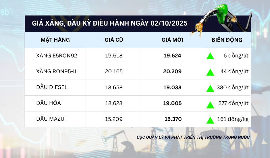 Thông tin về giá xăng dầu kỳ điều hành ngày 02/10/2025