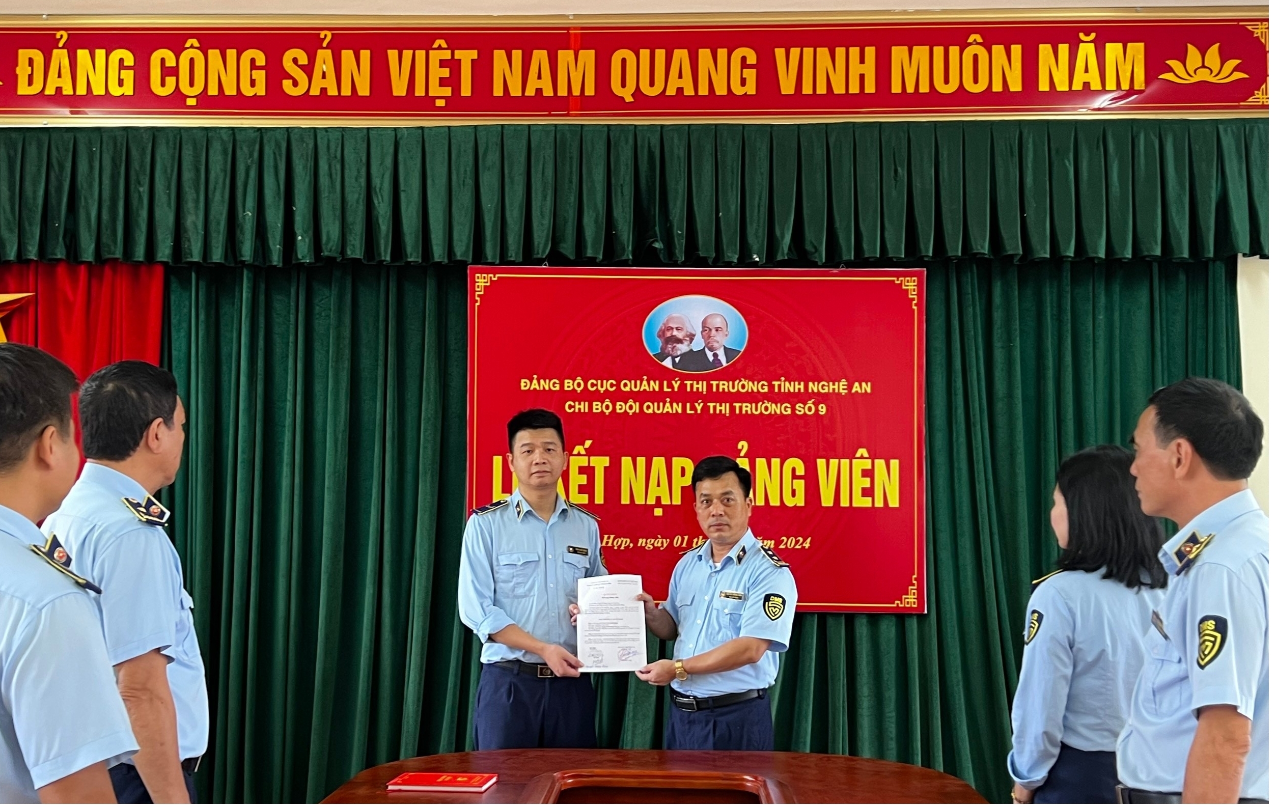 Trong 2 ngày 01,02/8/2024, Chi bộ Đội QLTT số 5, Chi bộ Đội QLTT số 9 và Chi bộ Đội QLTT số 3 thuộc Đảng bộ Cục QLTT tỉnh Nghệ An đã trang trọng tổ chức Lễ kết nạp Đảng viên mới cho 03 quần chúng ưu tú tại 03 chi bộ.