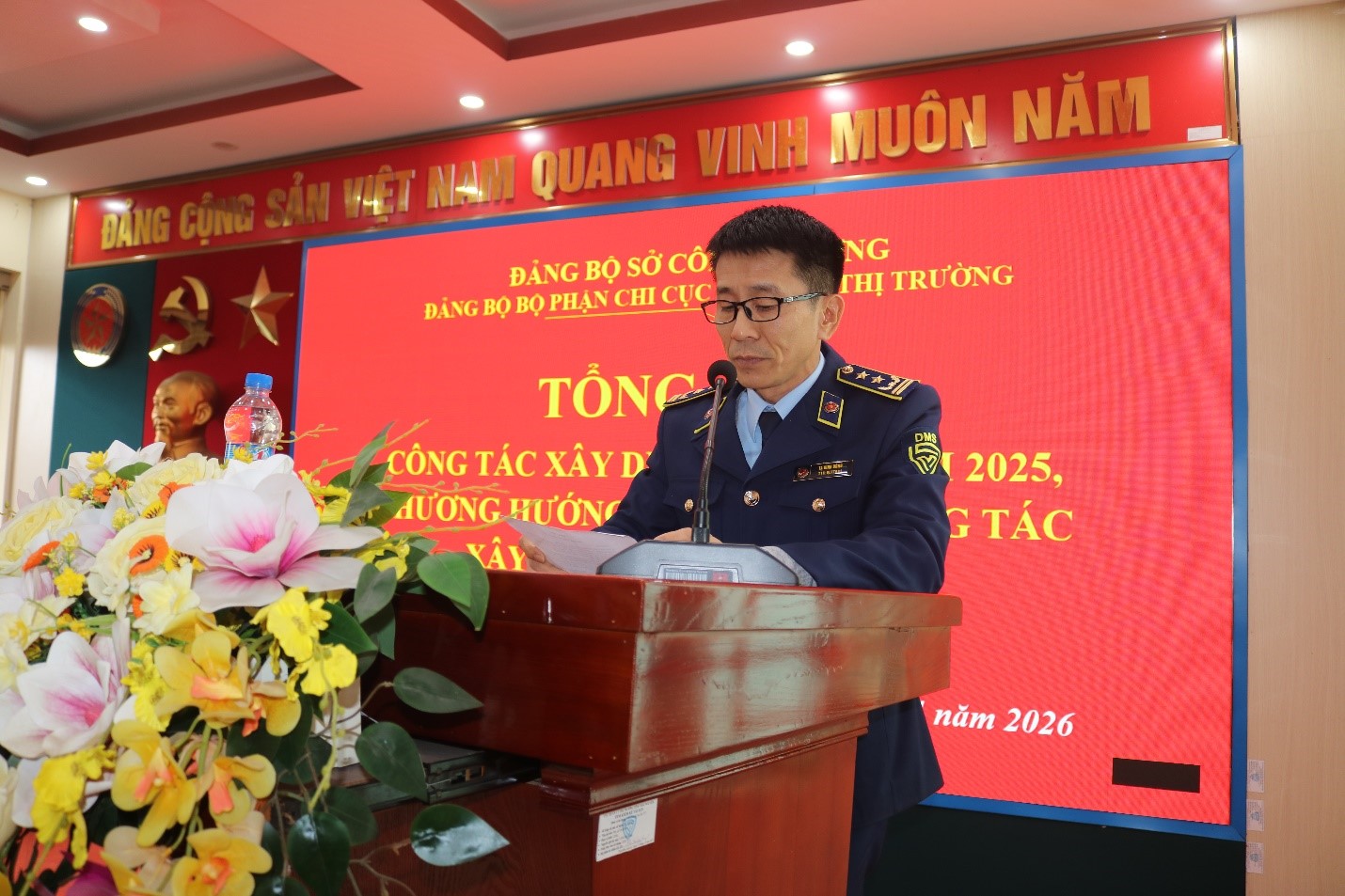 Bên cạnh nhiệm vụ chuyên môn, công tác xây dựng Đảng tiếp tục được quan tâm, chú trọng. Đảng bộ bộ phận Chi cục đã tổ chức thành công Đại hội Đảng bộ bộ phận nhiệm kỳ 2025 - 2030, duy trì nghiêm chế độ sinh hoạt chi bộ, tăng cường công tác kiểm tra, giám sát; gắn công tác xây dựng Đảng với xây dựng lực lượng QLTT trong sạch, vững mạnh. Công tác giáo dục chính trị, tư tưởng, đạo đức công vụ được triển khai đồng bộ; kịp thời động viên cán bộ, đảng viên yên tâm công tác trong điều kiện địa bàn rộng, biên chế thiếu và nhiều áp lực nghề nghiệp.