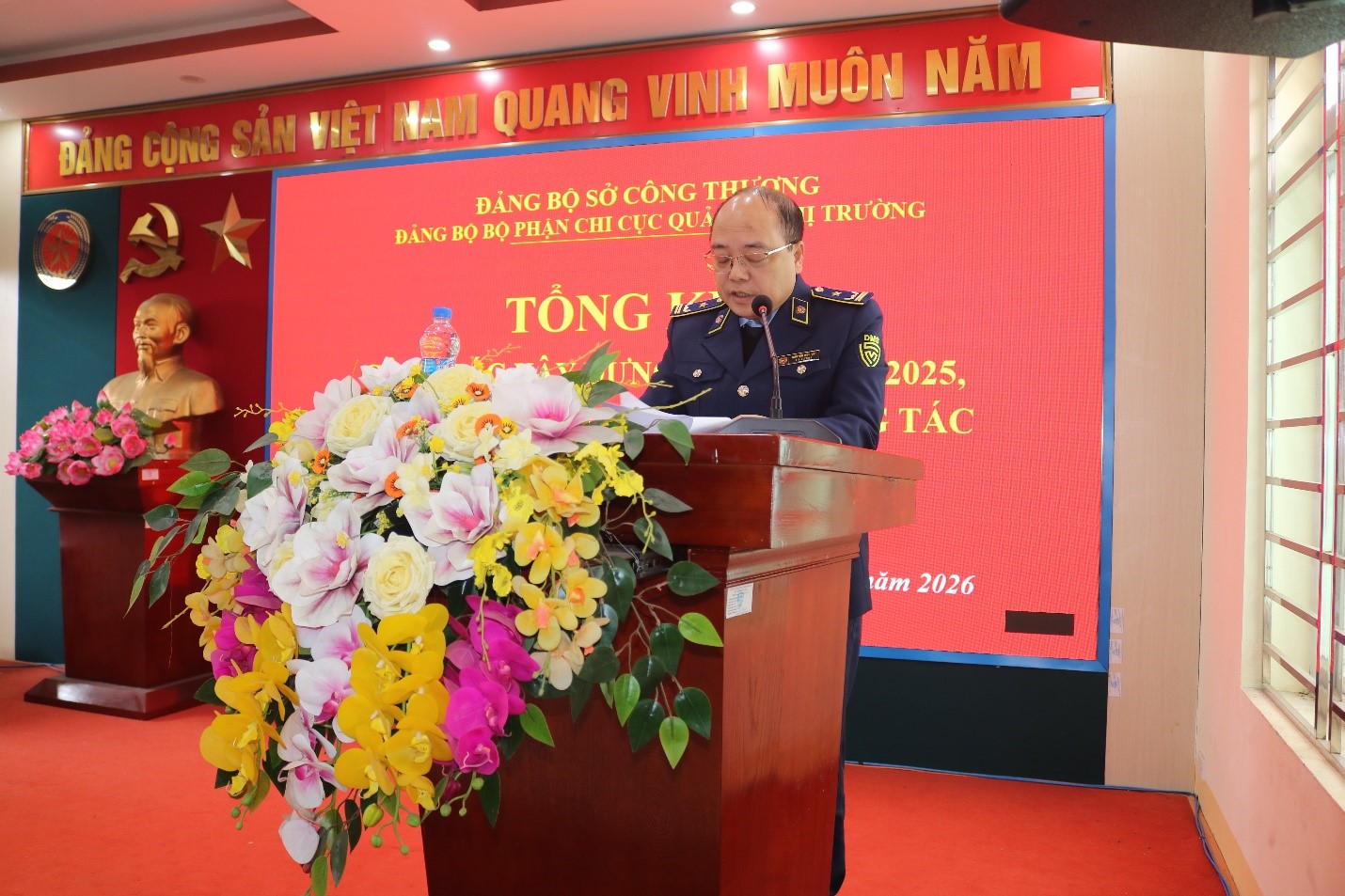 Phát biểu tại Hội nghị, Đồng chí Phan Bá Trường - Uỷ viên Ban Thường vụ Đảng uỷ, Phó Giám đốc Sở Công Thương ghi nhận và biểu dương những kết quả mà Chi cục Quản lý thị trường tỉnh đã đạt được trong năm 2025; đồng thời nhấn mạnh, “Trong điều kiện vừa thực hiện sắp xếp, kiện toàn tổ chức, vừa đảm đương khối lượng công việc lớn, lực lượng Quản lý thị trường tỉnh Thái Nguyên đã thể hiện tinh thần trách nhiệm cao, đoàn kết, chủ động, hoàn thành tốt nhiệm vụ chính trị được giao. Theo đó, Đảng bộ bộ phận Chi cục cần tiếp tục phát huy vai trò lãnh đạo, nâng cao chất lượng đội ngũ, tăng cường ứng dụng công nghệ số, đáp ứng yêu cầu quản lý thị trường trong tình hình mới.”