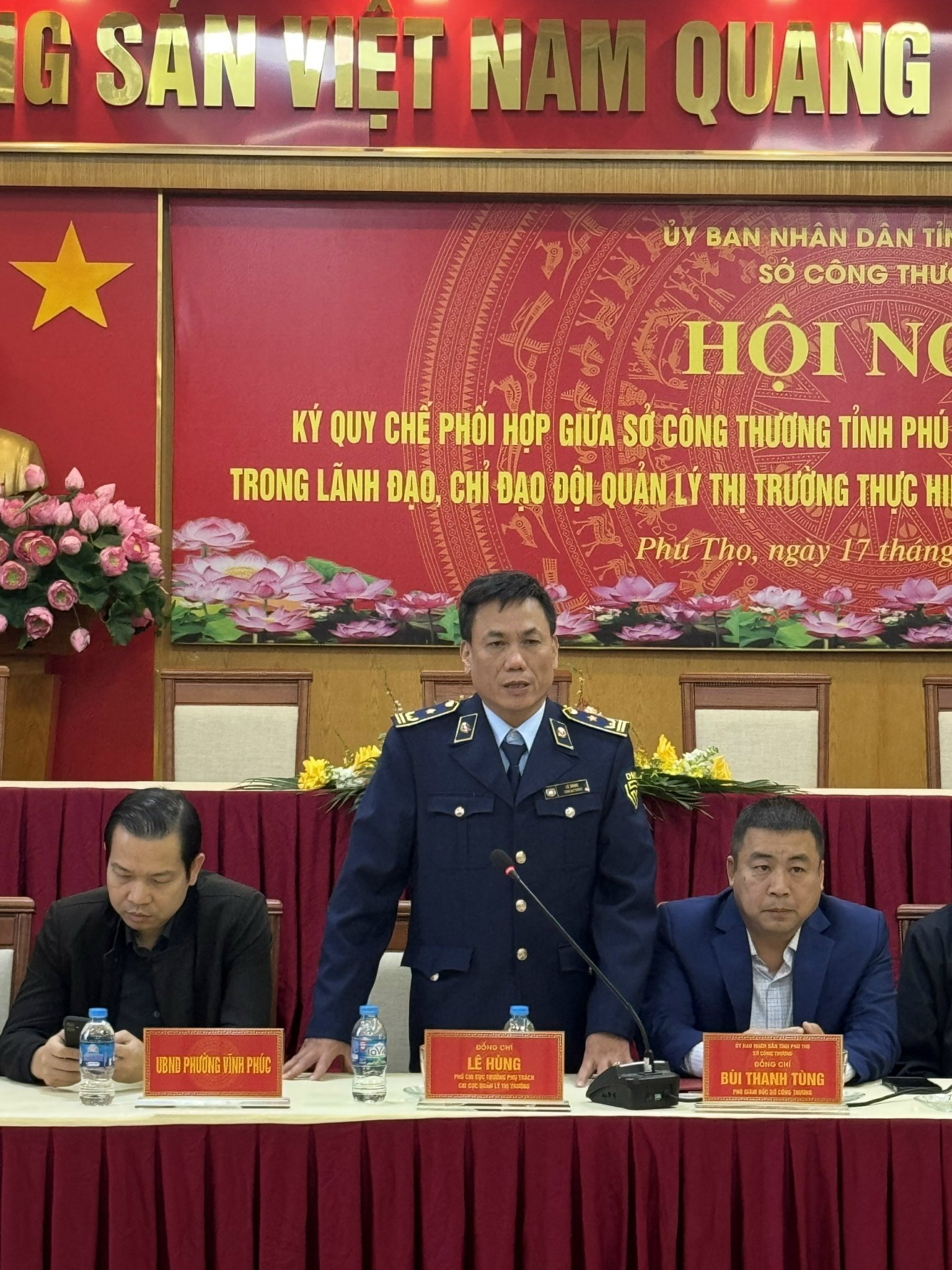 Phát biểu tại Hội nghị, đồng chí Bùi Thanh Tùng - Phó Giám đốc Sở Công Thương, Phó trưởng Ban Chỉ đạo 389 tỉnh Phú Thọ nhấn mạnh “Lực lượng Quản lý thị trường là lực lượng chuyên trách của Nhà nước, thực hiện chức năng phòng, chống, xử lý các hành vi kinh doanh hàng hóa nhập lậu, hàng giả, hàng cấm, gian lận thương mại. Trong những năm qua, lực lượng Quản lý thị trường luôn là lực lượng rất quan trọng, đóng vai trò nòng cốt trong việc duy trì trật tự kỷ cương về hoạt động thương mại trên thị trường nội địa. Cùng với việc tổ chức mô hình chính quyền địa phương 2 cấp, lực lượng Quản lý thị trường được sắp xếp lại và chuyển về địa phương quản lý, hiện nay mô hình hoạt động của Chi cục Quản lý thị trường tỉnh Phú Thọ được duy trì ngành dọc 2 cấp (tức là Chi cục thuộc Sở và các Đội trực thuộc Chi cục). Do vậy việc Sở Công Thương và UBND xã, phường ký Quy chế phối hợp trong việc lãnh đạo, chỉ đạo cấp Đội Quản lý thị trường là cần thiết và phù hợp với bối cảnh, tình hình thực tiễn hiện nay”.